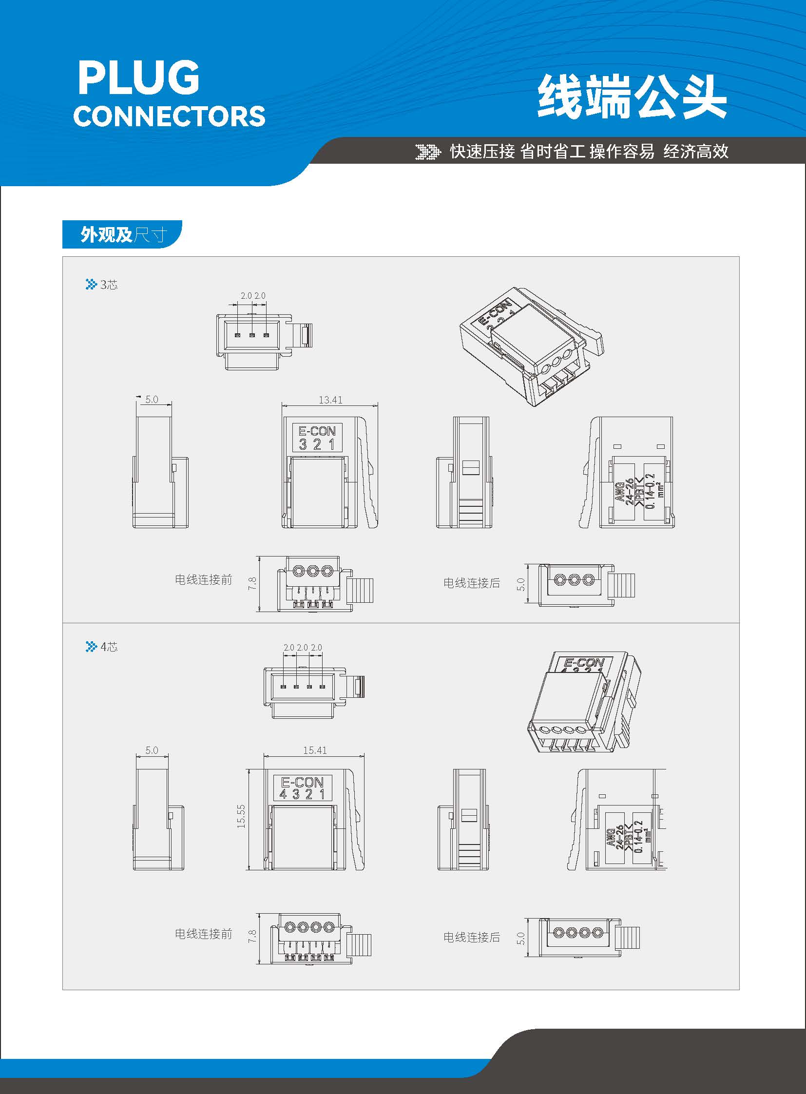 •按照线缆的参数选用不同颜色的E-CON连接器,不同
